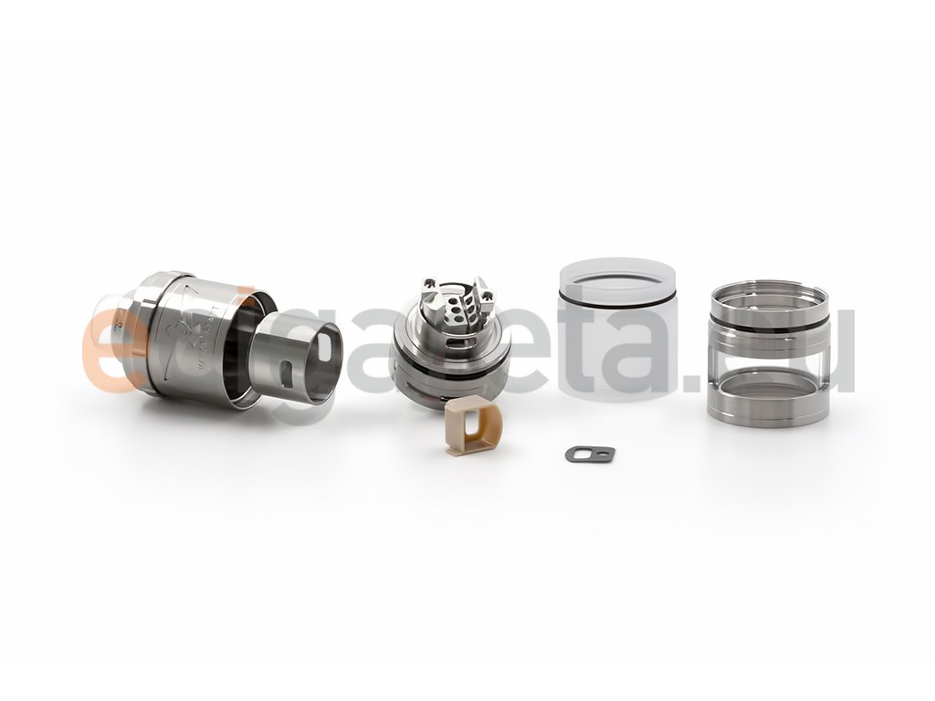Přestavitelný RTA atomizér s průměrem 25mm, objem 7,5 - 9ml, AFC regulační kroužek, Nerezová ocel, pyrexové sklo, závit 510. Horní plnění.