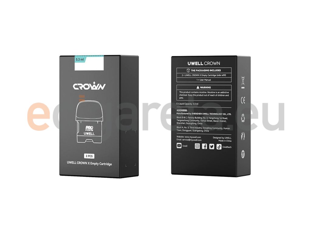 Náhradní cartridge Uwell Crown X disponuje základním objemem 5,3 ml. Jedná se o samostatnou prázdnou cartridge, ke které je nutné přikoupit odpovídající žhavící hlavy. Cartridge se postará o perfektní přenos husté a bohaté páry do úst a o vynikající podání chuti.