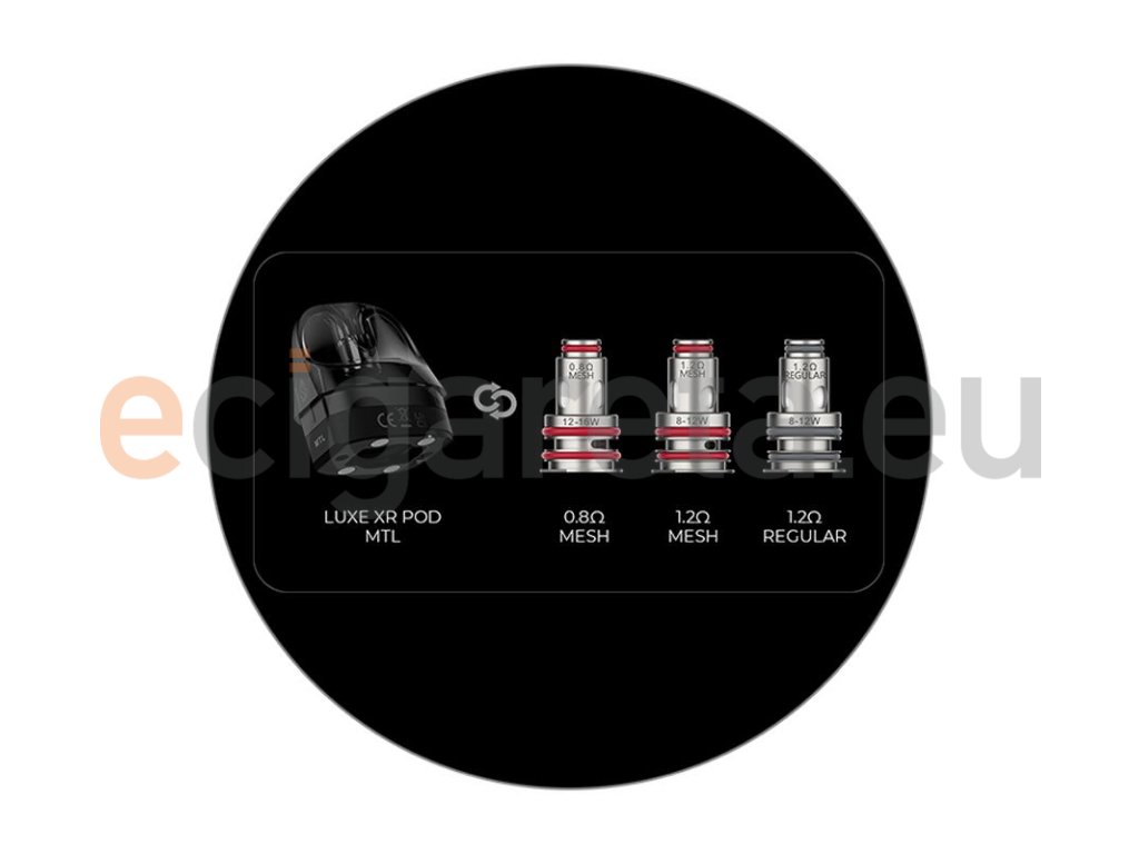 Náhradní cartridge Vaporesso LUXE XR Pod nabídne hned tři varianty těla podle stylu vapování. K dispozici je cartridge Vaporesso LUXE XR Pod RDL, MTL, nebo DL. Cartridge disponuje objemem 5ml. Jedná se o samostatnou prázdnou cartridge, ke které je nutné přikoupit odpovídající žhavící tělíska. Všechny jsou kompatibilní s platformou Vaporesso GTX. Cartridge se postará o perfektní přenos husté a bohaté páry do úst a o vynikající podání chuti.