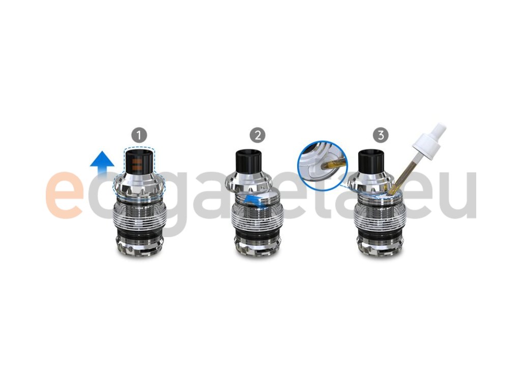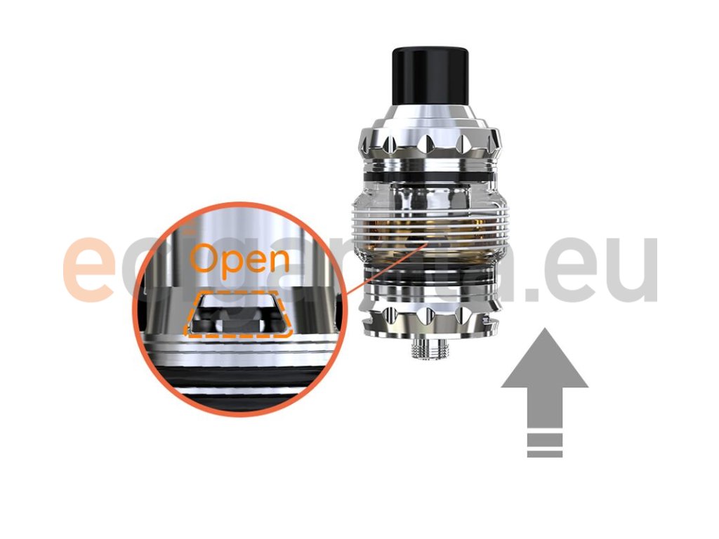 Objem tanku činí 4 ml. Díky této obrovské kapacitě nebudete muset řešit časté doplňování a užijete si dlouhé hodiny pohodového a nerušeného vapování. V případě nutnosti plnění vás potěší přítomnost jednoduchého vrchního systému s dětskou pojistkou. Jemně nadzdvihněte vrchní uzávěr a následně ho vysuňte do strany. Poté už můžete začít plnit e-liquid až do maximální kapacity tanku. Proces zabere jen několik málo vteřin.