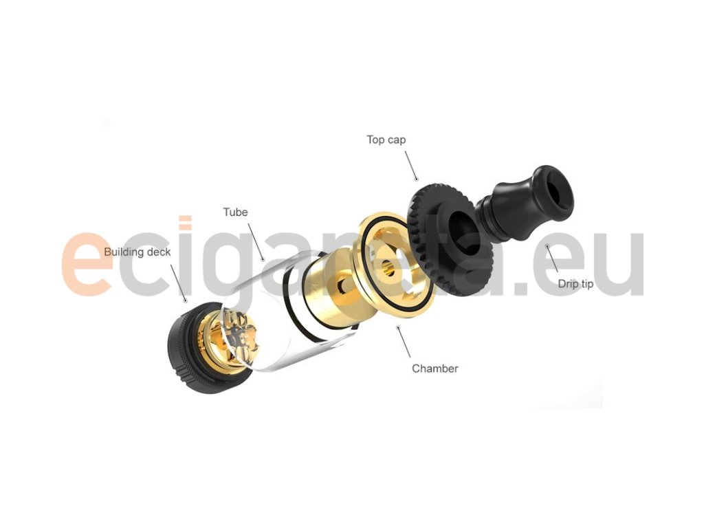 Objem tanku činí 3 ml, atomizér si tak poradí s mnohahodinovým používáním bez nutnosti dalšího plnění. Jestliže však na plnění dojde, tak vás potěší přítomnost vrchního systému plnění. Jednoduše tak odšroubujete vrchní uzávěr a během pár vteřin doplníte e-liquid zpět do tanku.