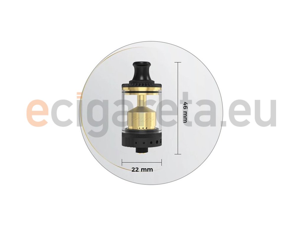 GAS MODS Pallas RTA je nový motací atomizér od populární společnosti GAS MODS, který se zaměřuje na příznivce klasického šlukování. Jedná se o kompaktní atomizér se stylovým a minimalistickým designem, který zaujme v prvé řadě svými rozměry a celkovým zpracováním. Tělo je vyrobeno z nerezové oceli a pyrexového skla. Samotné sklo budete moci navíc nahradit za nerezové tělo s polykarbonátem a snadno tak změnit celkový vzhled atomizéru. Pallas RTA nabídne délku jen 46 mm a průměr se zastavil na krásných 22 mm. Ve spodní části se nachází závit typu 510 pro kompatibilitu s drtivou většinou modů na dnešním trhu. Základní objem tanku činí 3 ml. Atomizér disponuje jednoduchým systémem vrchního plnění. Postačí tak odšroubovat uzávěr a během pár vteřin znovu doplnit do plné kapacity.