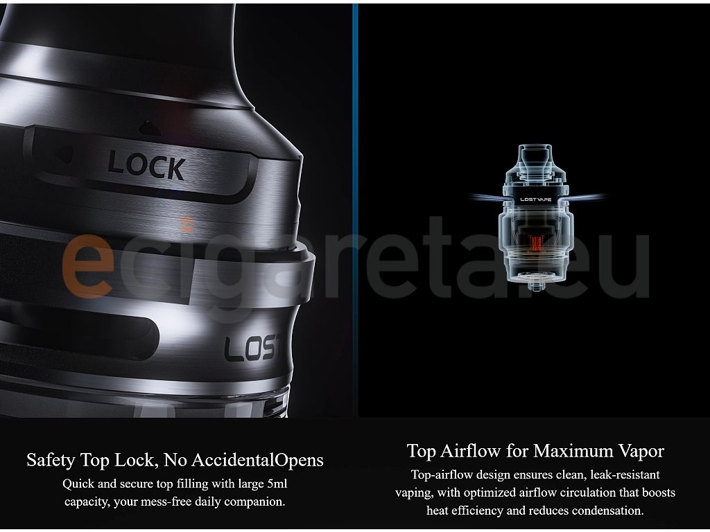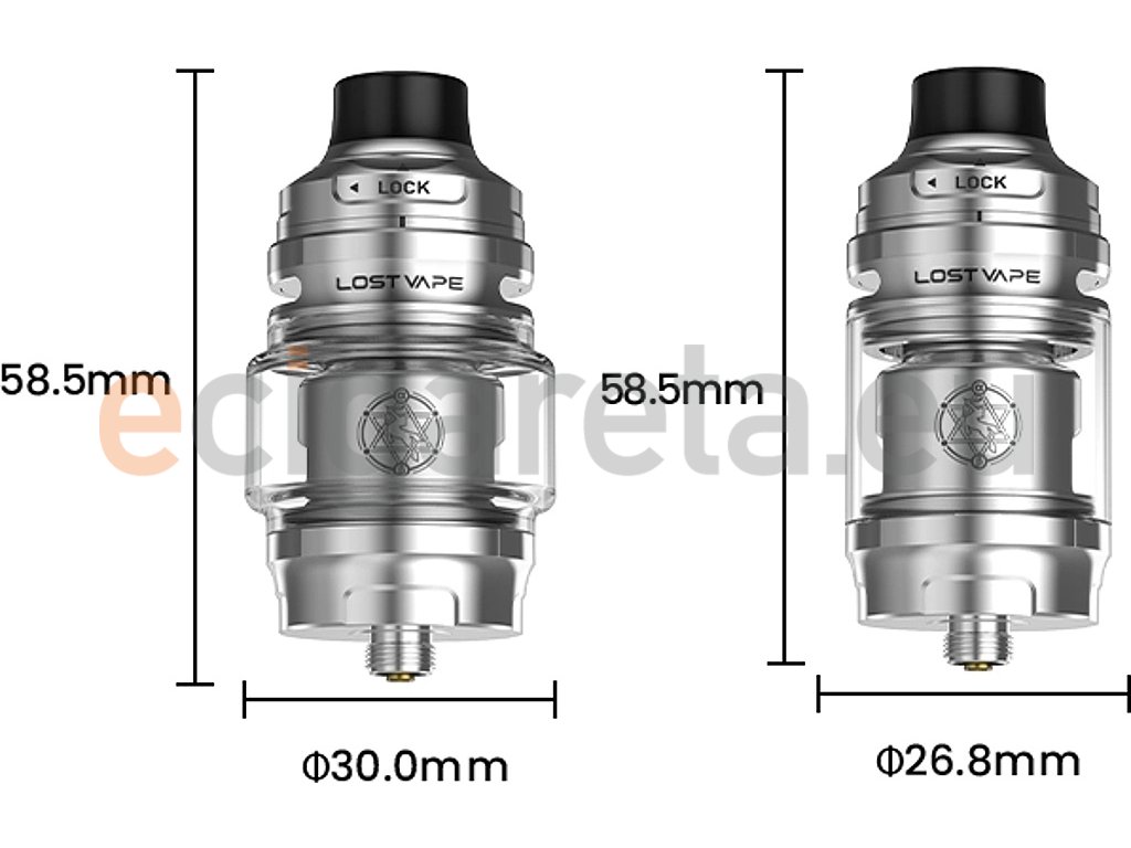 Parametry a specifikaceVýrobce: Lost Vape Objem: 5 ml (bubble sklo) / 3 ml (rovné sklo) Odpor žhavících hlav v balení: 0.15Ω / 0.3Ω Materiál spirálek: Mesh pletivo Styl potahování: DL (Direct Lung - přímé potahování) Způsob plnění: Horní výsuvné plnění Závit: 510 Regulace přívodu vzduchu: Ano, horní airflow Rozměry: 58,5 mm x 26,8 mm s bubble sklem 30 mm Materiál: Nerezová ocel SUS303 + borosilikátové sklo Barva: Silver (Stříbrná) Legislativa: Tento výrobek je určen pro náplně bez obsahu nikotinu.