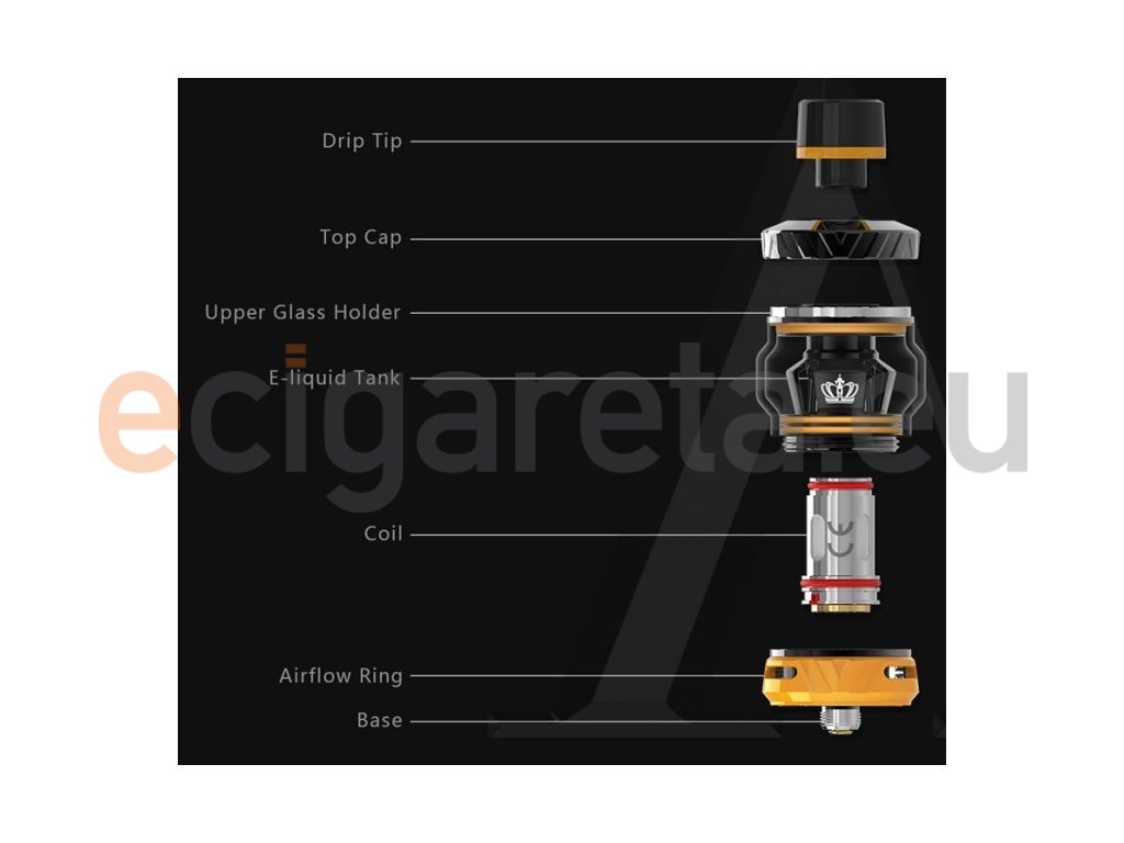 Není určeno pro náplně obsahující nikotin! Clearomizery řady Crown od společnosti Uwell představují po roce již pátou verzi tohoto oblíbeného sub-ohmového clearomizeru, který disponuje patentovanou samočisticí technologií, která absorbuje vytékající liquid v základně a následně ho dopraví do žhavící hlavy k odpařování... Více info v detailním popisu