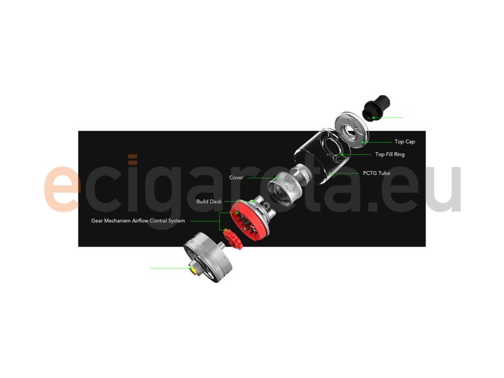 Wotofo COG MTL RTA přichází se stylovým designovým zpracováním, jehož dominantou je transparentní tělo z PCTG materiálu. Tato odolná konstrukce lépe odolává vnějším vlivům a zároveň působí jako skvělý designový doplněk. Konstrukce atomizéru je potom vyrobena z kvalitní nerezové oceli.