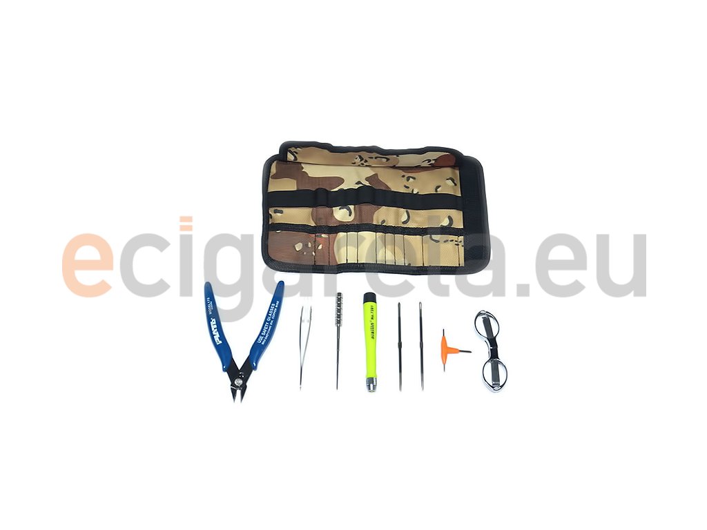 Vpdam přichází s nabídkou praktického setu nářadí, se kterým se výroba, ale následně i samotná instalace vlastnoručně vyrobených spirálek stane naprostou rutinou. K instalaci vlastní spirály, například někde na cestách, Vám postačí už jen přibalit své oblíbené spirálky, absorpční vatu a svou RBA, RDA, či RTA hlavu, a můžete vyrazit v podstatě kamkoliv. Vše potřebné k tomuto úkonu totiž naleznete právě v tomto povedeném setu nářadí. Od štípacích a klasických kleští, přes nepostradatelnou pinzetu, šroubováček, nůžkami na stříhání vaty, nástroje k výrobě spirálek, zkrátka vše potřebné k instalaci připravené spirály. SET nářadí Vape Tool totiž obsahuje vše potřebné.