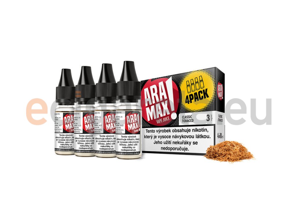 Aramax Classic Tobacco (Klasický tabák) 4x10ml intenzita nikotinu 12mg tabáková nálepka Kolek Q