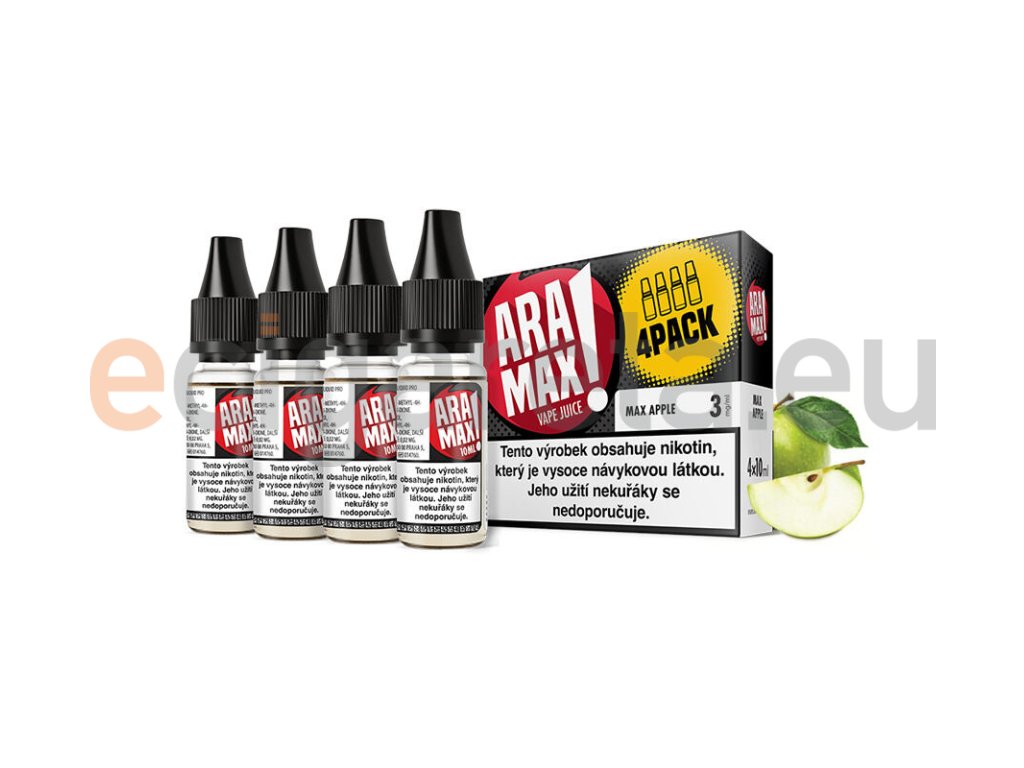 Aramax Max Apple (Jablko) 4x10ml intenzita nikotinu 3mg tabáková nálepka Kolek Q