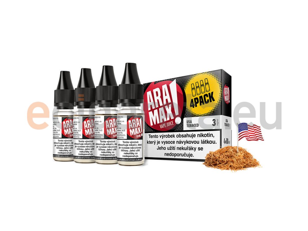 Aramax USA Tobacco (Americký tabák) 4x10ml intenzita nikotinu 3mg tabáková nálepka Kolek Q
