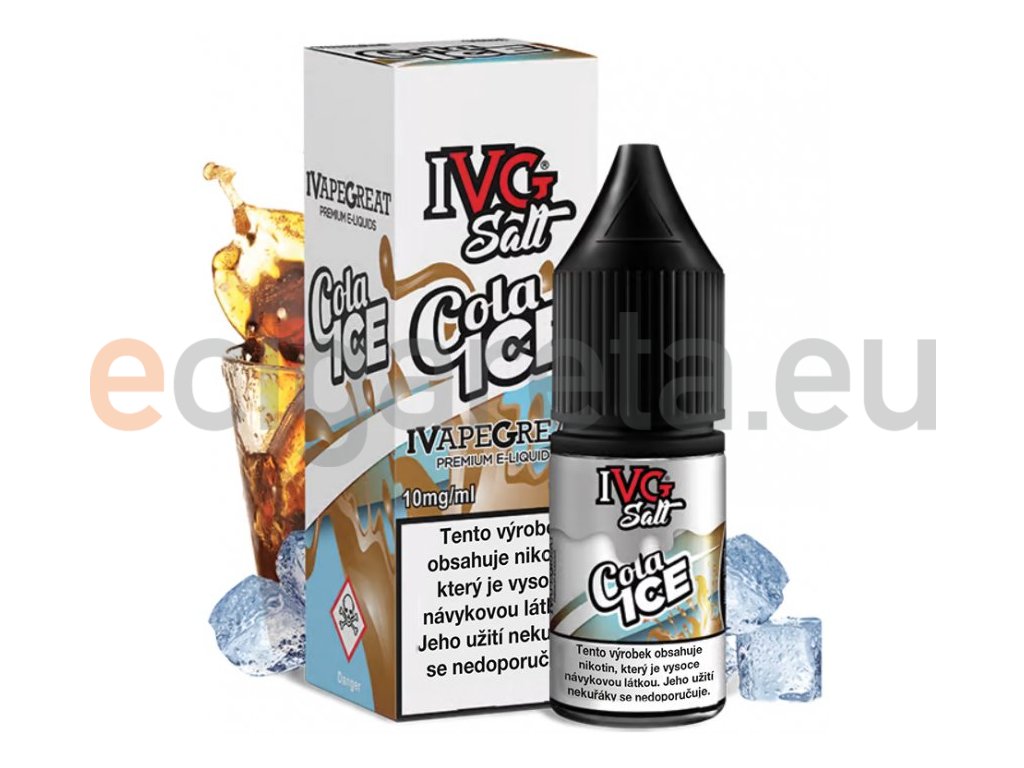 Vychlazená kola s kostkami ledu... Prémiové britské liquidy I VG s nikotinovou solí v poměru 50VG/50PG. Liquidy SALT se od běžných liquidů odlišují tím, že mají nižší PH a obsahují stále více oblíbenou a žádanou nikotinovou sůl, díky které dochází k rychlejší a kvalitnější vstřebatelnosti = bez dráždivého pocitu v krku oproti klasickým liquidům.