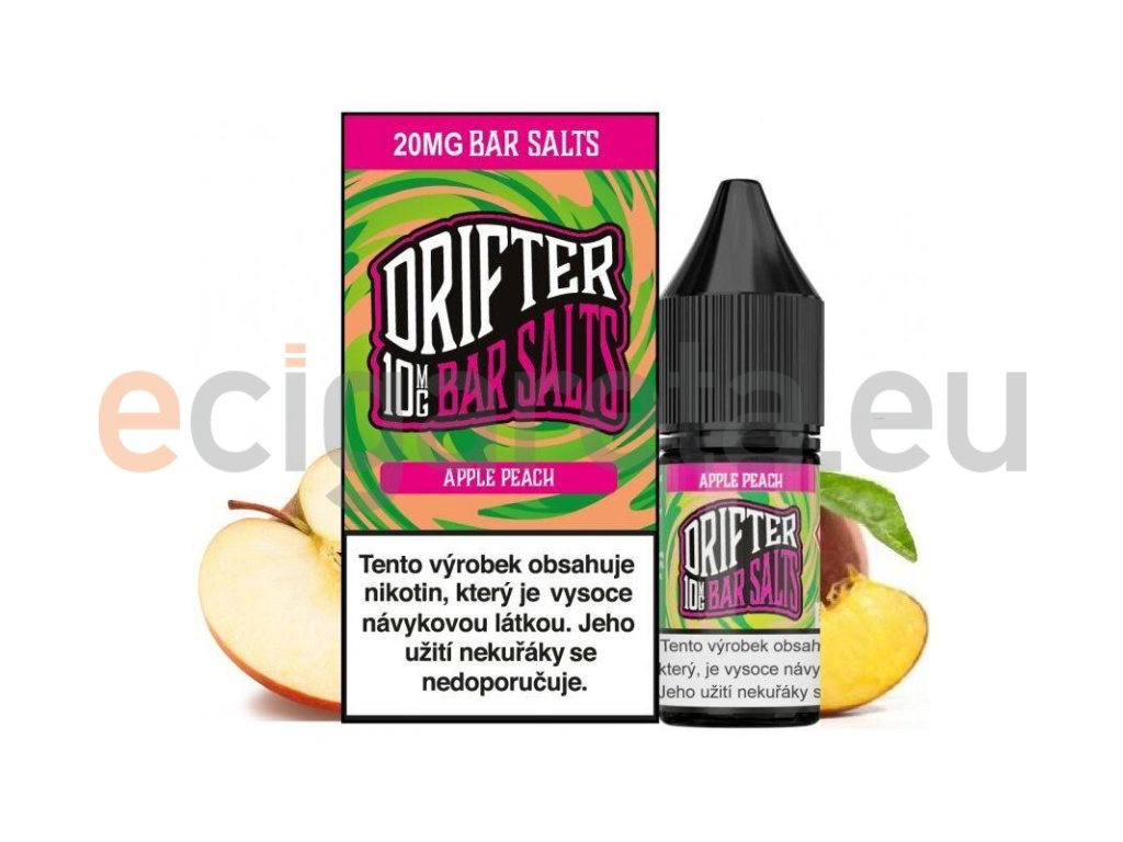 Drifter Bar Salts Apple Peach (Jablko a broskev) 10ml intenzita nikotinu 20mg tabáková nálepka Kolek Q