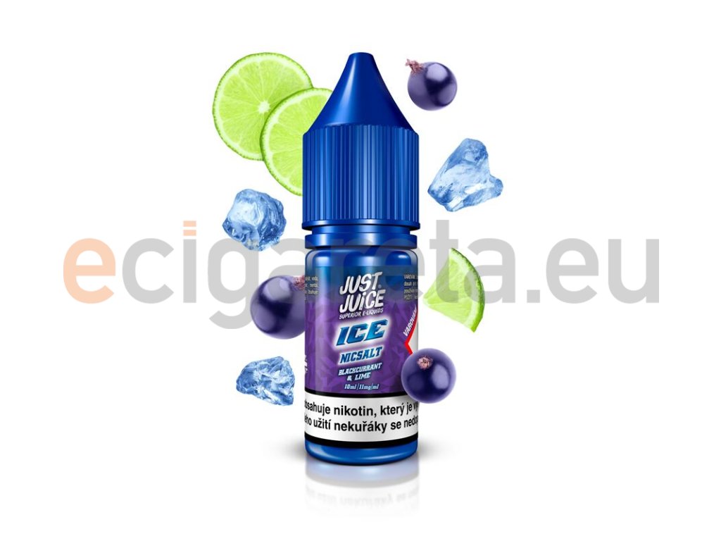Just Juice Salt ICE Blackcurrant & Lime (Ledový černý rybíz & limetka) 10ml intenzita nikotinu 11mg tabáková nálepka Kolek Q
