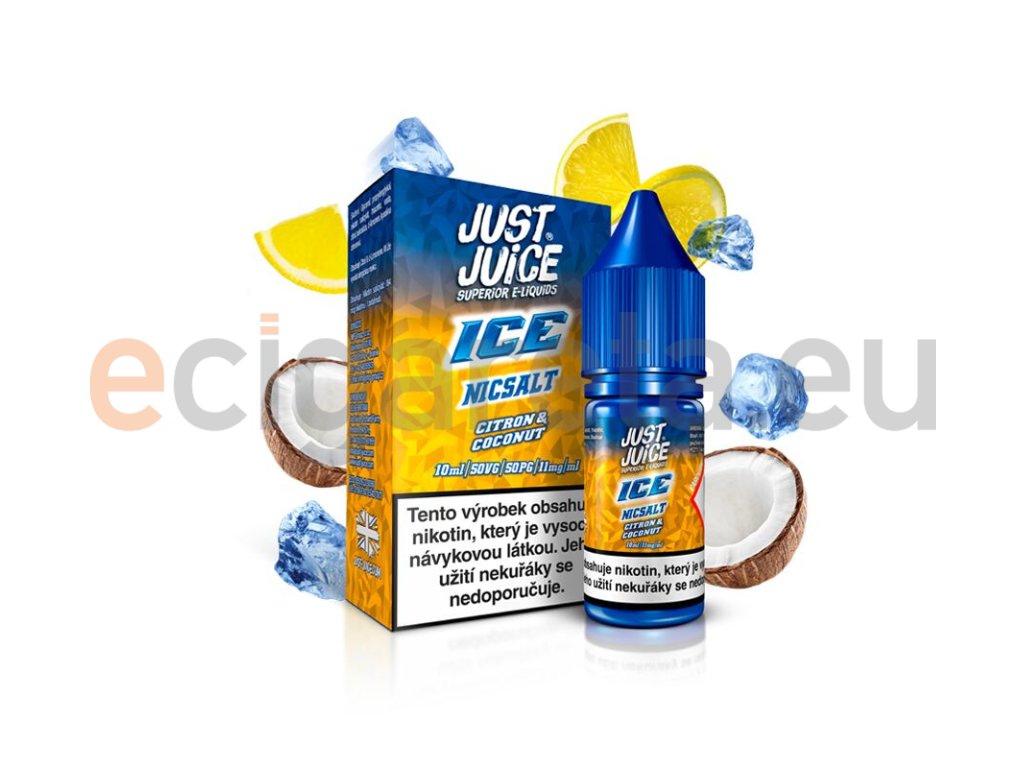 Just Juice Salt ICE Citron & Coconut (Ledový citron & kokos) 10ml intenzita nikotinu 11mg tabáková nálepka Kolek Q