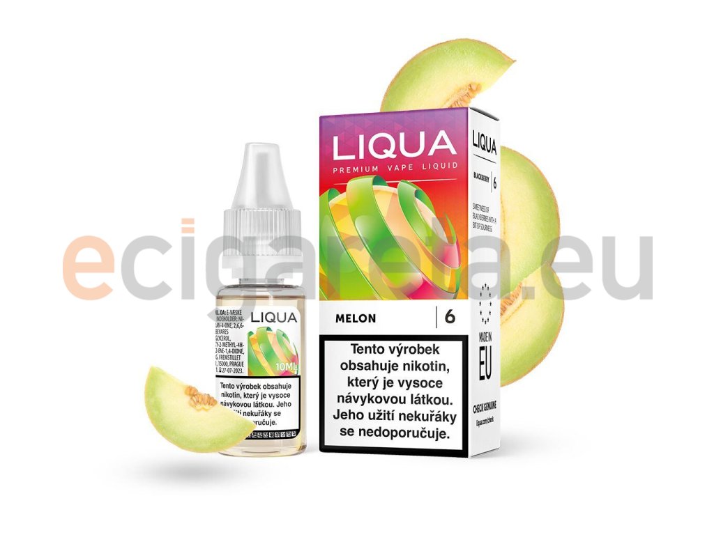 LIQUA Melon (Sladký cukrový meloun) 10ml intenzita nikotinu 6mg tabáková nálepka Kolek Q