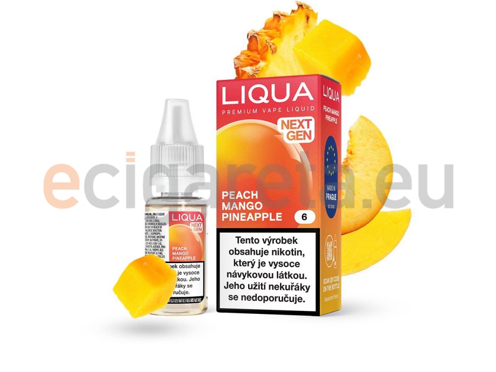 LIQUA Peach Mango Pineapple (Mango, ananas a broskev) 10ml intenzita nikotinu 6mg tabáková nálepka Kolek Q