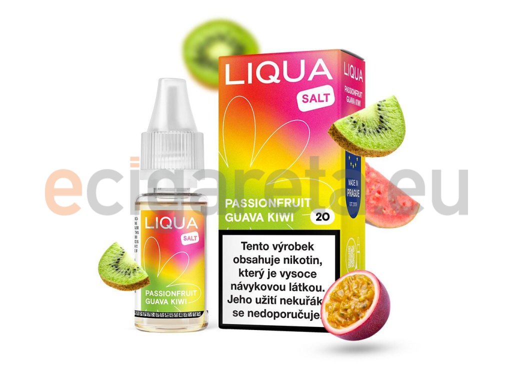 LIQUA Salt Passionfruit Guava Kiwi (Kiwi, marakuja a guava) 10ml intenzita nikotinu 10mg tabáková nálepka Kolek Q