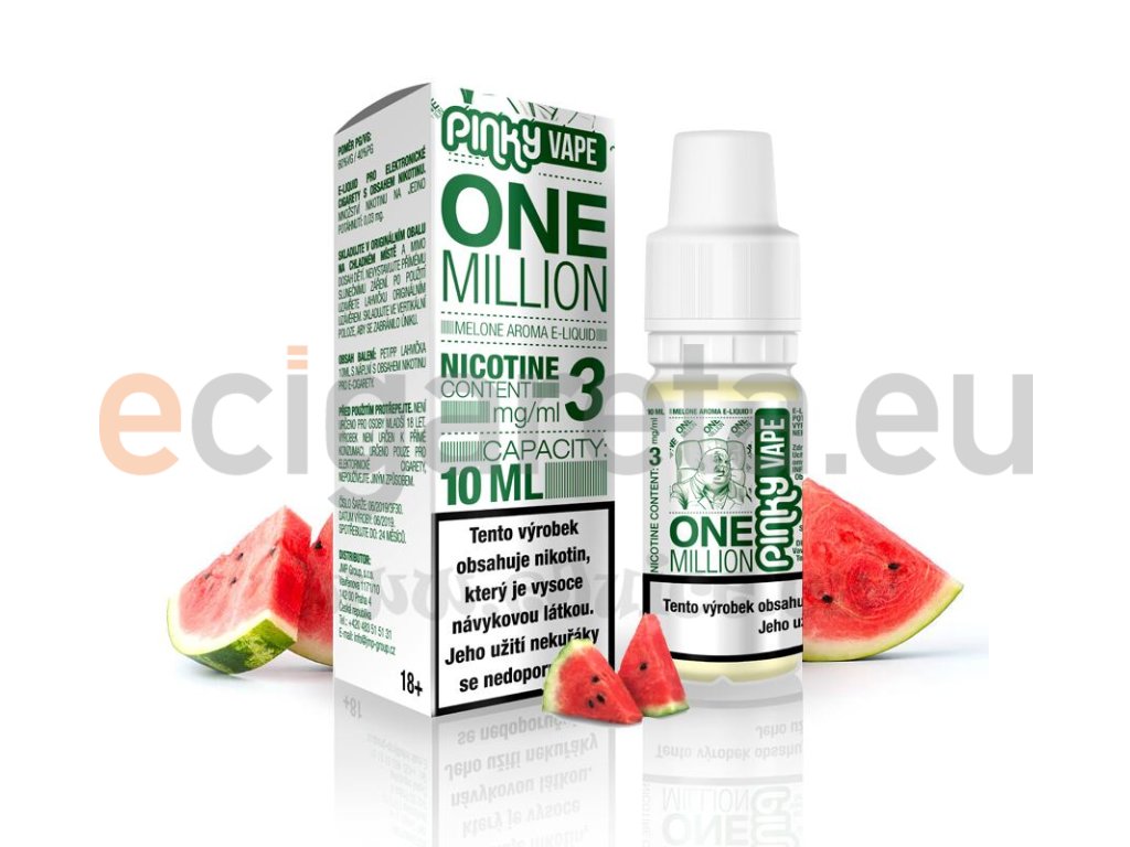 Pinky Vape One Million (Meloun) 10ml intenzita nikotinu 0mg tabáková nálepka Kolek Q