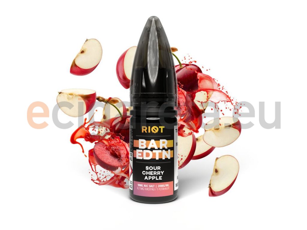 Riot BAR EDTN Salt Sour Cherry Apple (Třešeň a zelené jablko) 10ml intenzita nikotinu 10mg tabáková nálepka Kolek Q