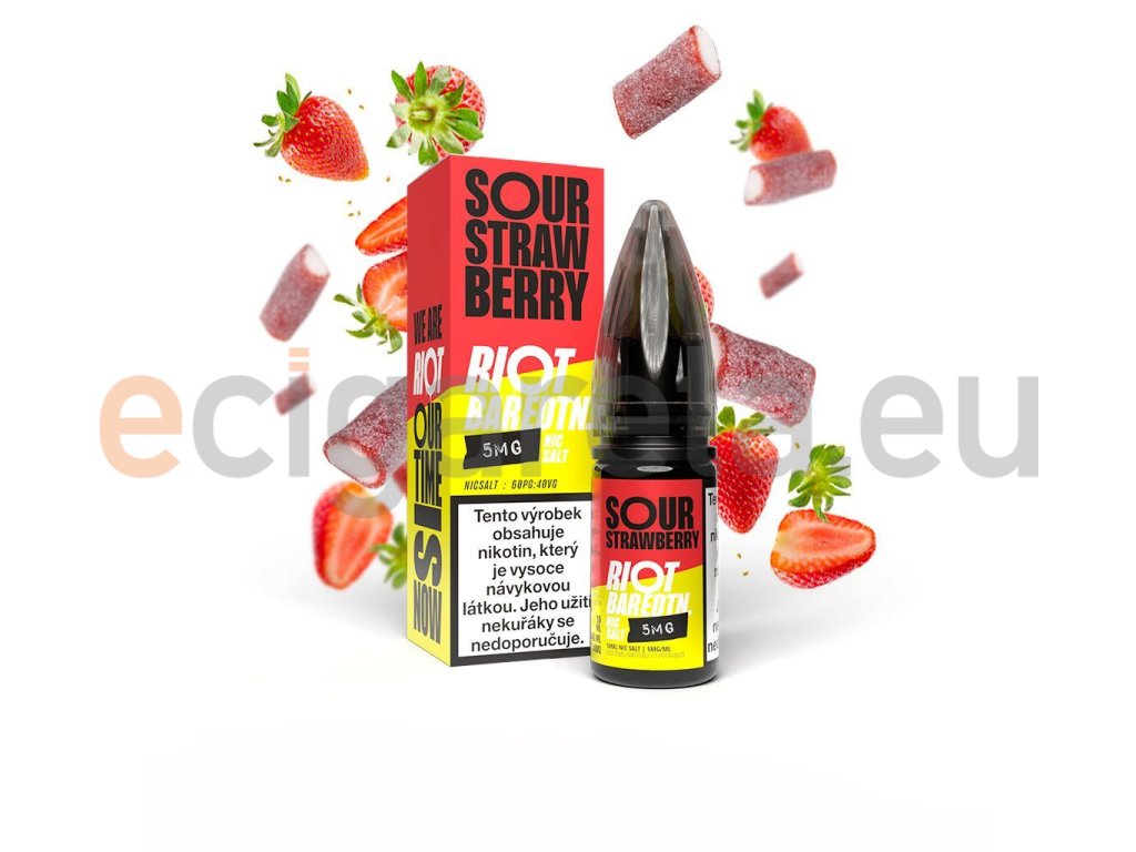 Riot BAR EDTN Salt Sour Strawberry (Kyselá jahoda) 10ml intenzita nikotinu 10mg tabáková nálepka Kolek Q