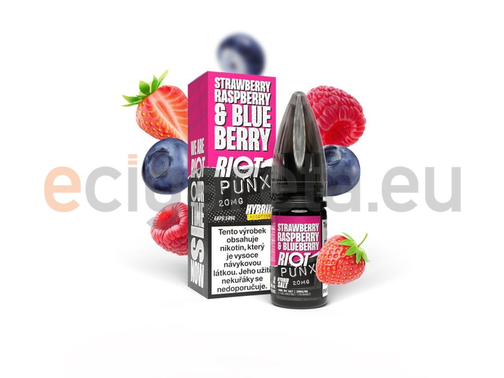 Riot S:ALT Hybrid Strawberry Raspberry Blueberry (Jahoda, malina a borůvka) 10ml intenzita nikotinu 20mg tabáková nálepka Kolek Q
