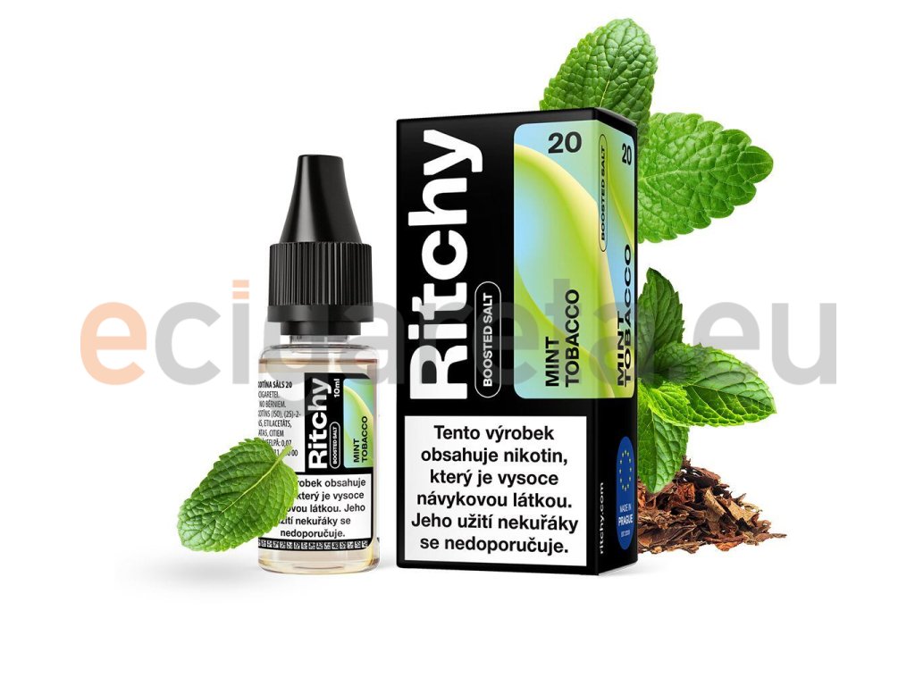 Ritchy Salt Mint Tobacco (Mátový tabák) 10ml intenzita nikotinu 20mg tabáková nálepka Kolek R