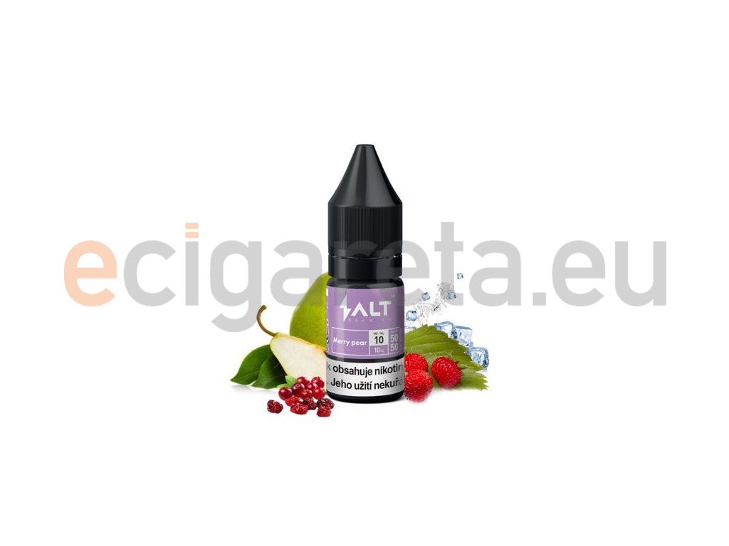 Salt Brew Co Merry Pear (Ledová hruška s jahodou) 10ml intenzita nikotinu 20mg tabáková nálepka Kolek Q