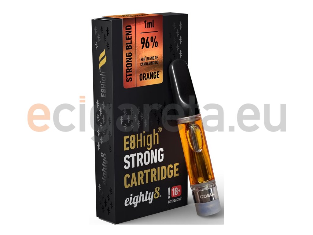 Pomeranč... Přednaplněná cartridge s 510 závitem o objemu 1ml od českého výrobce Eighty8. Unikátní směs plně legálních a hlavně bezpečných kanabinoidů sestavena pro maximální HIGH efekt, která je legální napříč celou Evropou. Od dob, co bylo zakázáno HHC, musíme říct, že E8High je blend kanabinoidů, na který všichni čekali.