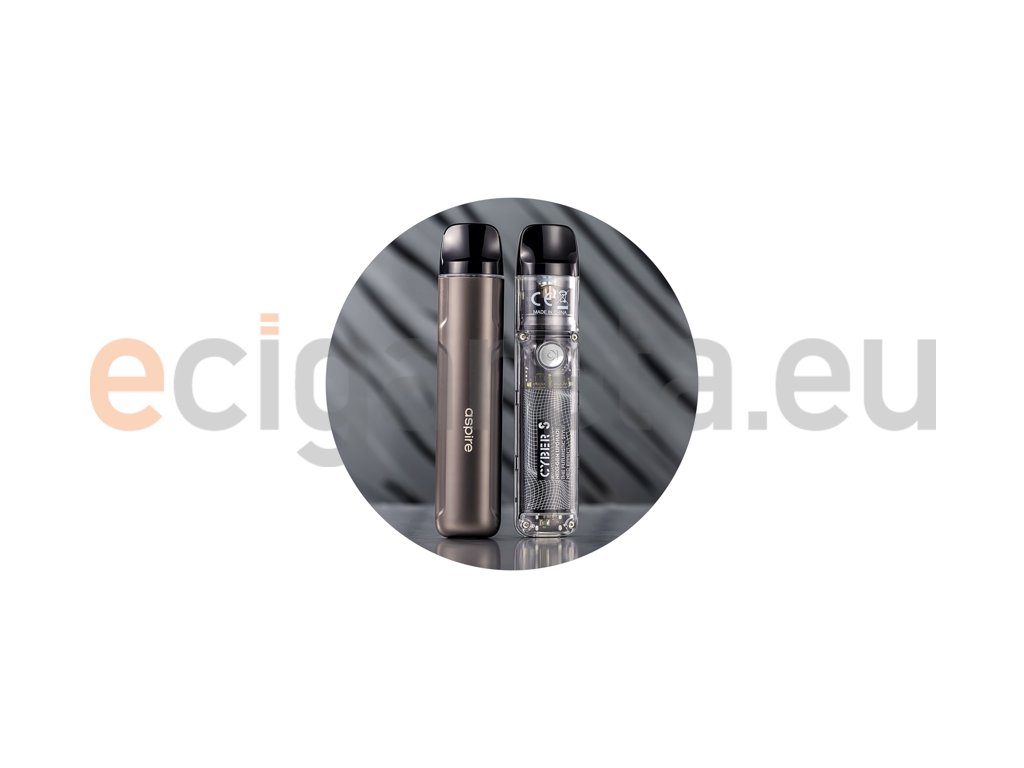 Série elektronických cigaret Cyber od výrobce Aspire se pyšní futuristickým designovým zpracováním a bohatou výbavou pro co nejlepší požitek z vapování. První model z této série s názvem Aspire Cyber S Pod Kit přichází se stylovou podlouhlou konstrukcí těla, která připomíná tradiční trubkové e-cigarety a kompaktními rozměry. Model disponuje rozměry 118.5 x 24 x 16 mm, skvěle proto padne do dlaně a e-cigaretu můžete hravě také přenášet například v kapse. Zadní panel je pokrytý barevným štítem ze zinkové slitiny, přední část e-cigarety je opatřena transparentní polykarbonátovou konstrukcí, skrz kterou můžete nahlížet na elektronické součásti uvnitř. Tělo je poháněno integrovanou baterií o kapacitě 700 mAh, která se postará o stabilní chod. Baterie pracuje s konstantním výstupním napětím 3.4 V. V případě potřeby budete moci baterii dobíjet prostřednictvím portu USB-C ve spodní části, e-cigareta navíc podporuje nabíjení proudem až 2A, do plné kapacity se tak zvládne dobít neuvěřitelně rychle.
