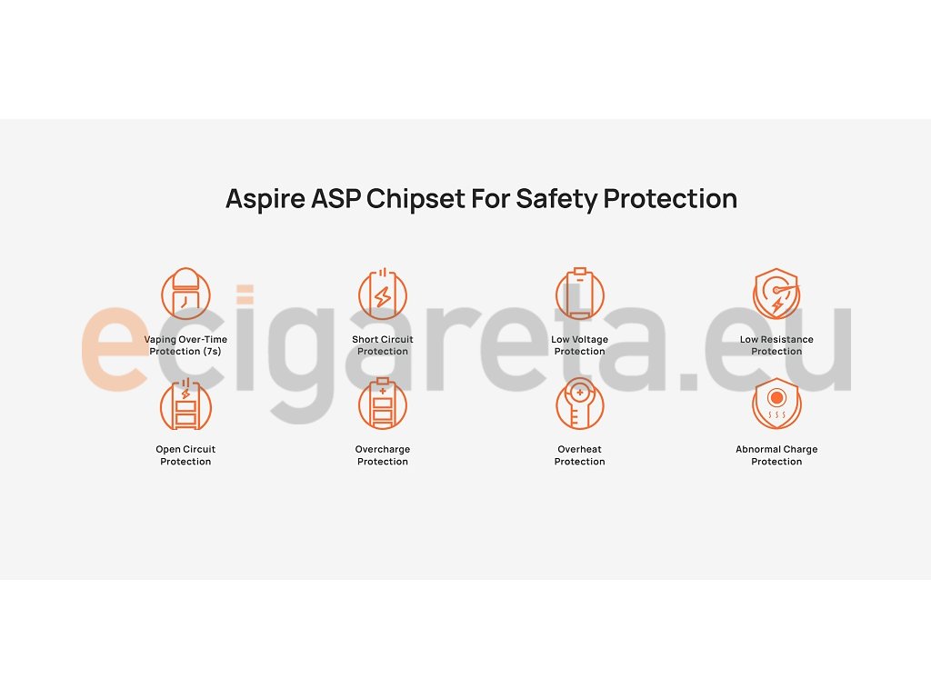 VýkonMaximální výkon 30W s rozsahem 5-30W umožňuje přizpůsobení podle vašich preferencí a použité žhavící hlavy. Aspire čipset zajišťuje spolehlivý a bezpečný provoz s možností automatického nebo manuálního nastavení výkonu pro optimální vapovací zážitek. |