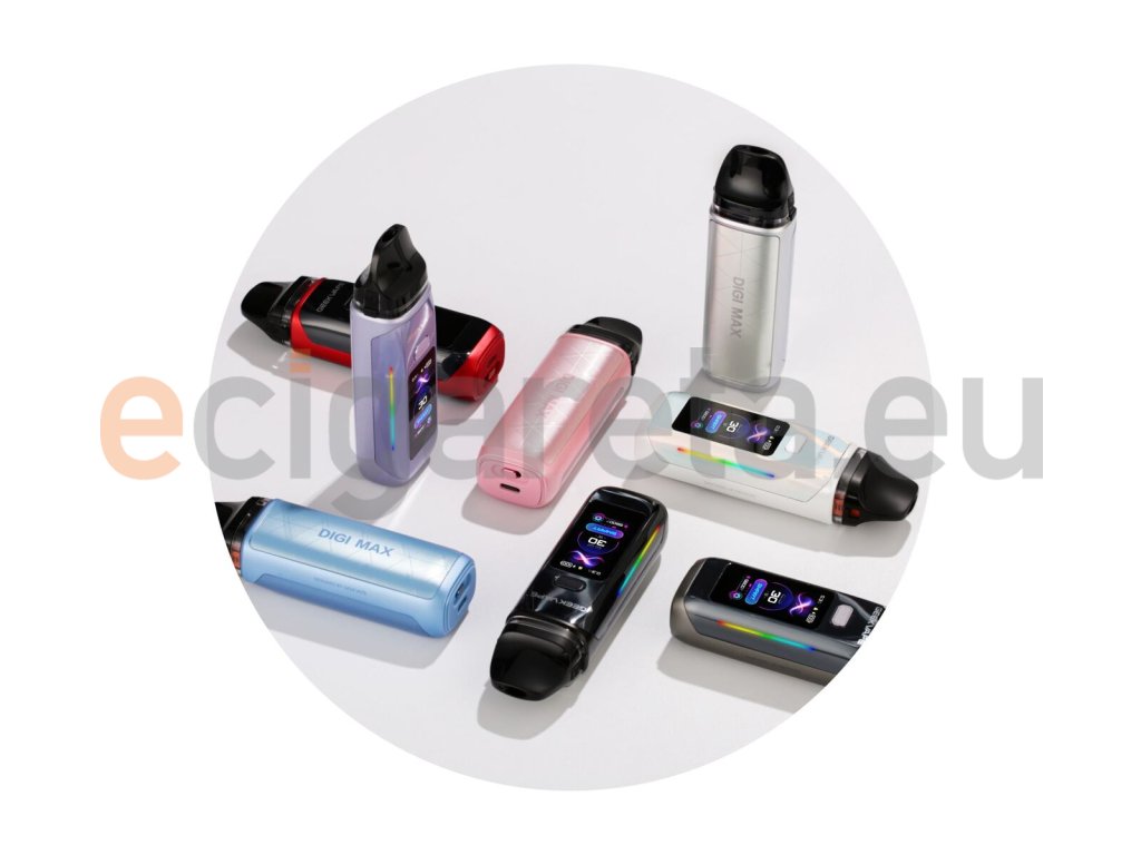 DIGI MAX je nejnovější přírůstek do rodiny e-cigaret renomovaného výrobce GeekVape. Svými parametry se řadí mezi naprostou špičku v POD systémech. Se svou masivní výdrží baterie, velkou kapacitou a rozsáhlými funkcemi je tou správnou volbou, pokud rádi zkoušíte technologické novinky a spokojíte se jen s tím nejlepším. DIGI MAX je vysoce přizpůsobitelný, neuvěřitelně uživatelsky přívětivý, podává vynikající chuť a pohodlně se ovládá díky obrovskému dotykovému displeji. Ať už preferujete jakýkoli styl vapování, tohle je zařízení, které musíte mít!