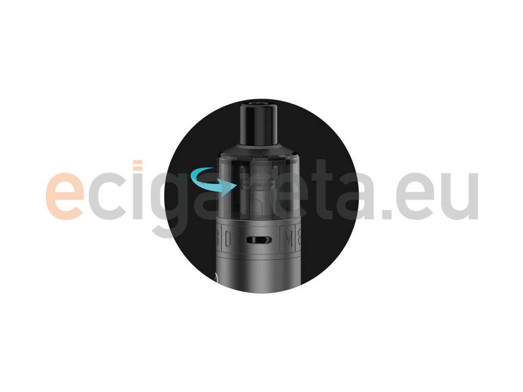 Ve vrchní části se nachází praktická cartridge s objemem 3 ml. Cartridge je navržena přesně pro potřeby všechy typů vaperů. Svědčí o tom ideální průměr náustku a celkové vnitřní zpracování cartridge. Přímo pod cartridgí si budete moci regulovat přísun vzduchu otáčením cartridge na základně e-cigarety. Výslednou tuhost potahu si tak doladíte přesně podle svých představ.