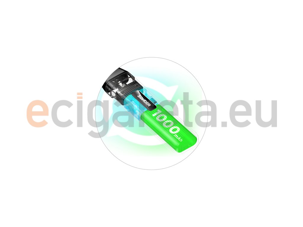 V kompaktním těle zařízení Sonder Q Pod na vás čeká integrovaná baterie s obrovskou kapacitou 1000 mAh pro dlouhou výdrž a bezproblémový chod. U většiny vaperů zvládne baterie až celodenní výdrž. Postará se také o rychlý náběh žhavení a stabilní výstupní výkon, jenž dosahuje až 20 W dle aktuálního odporu cartridge. Baterii budete moci kdykoliv pohodlně dobít prostřednictvím portu USB-C v boční části.
