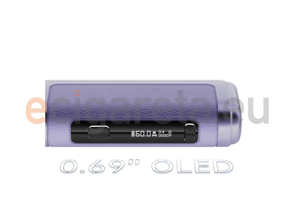 V boční části se nachází praktický OLED displej s příjemnou čitelností a svítivostí. E-cigareta je rovněž vybavena velice přehledným uživatelským rozhraním pro snadné a rychlé nastavení všech parametrů. Všechny potřebné informace máte navíc neustále při ruce a můžete si je kdykoliv zkontrolovat.