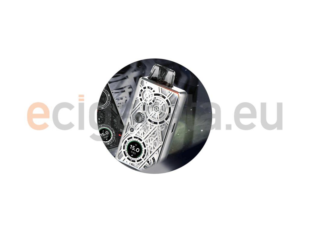 Innokin Klypse Mecha Pod Kit šlape jako hodinky. Pod systém zkonstruovaný z prémiové zinkové slitiny s promyšleným designem inspirovaným strojkem v tradičních mechanických hodinkách je ukázkou mistrovské zručnosti designérů ze společnosti Innokin. S přehledným uživatelským rozhraním a intuitivním ovládáním pomocí otočného kolečka se nebudete ani na vteřinu nudit a díky velké kapacitě baterie a podpoře cartridgí Klypse se můžete těšit na nekonečné hodiny příjemného vapování.