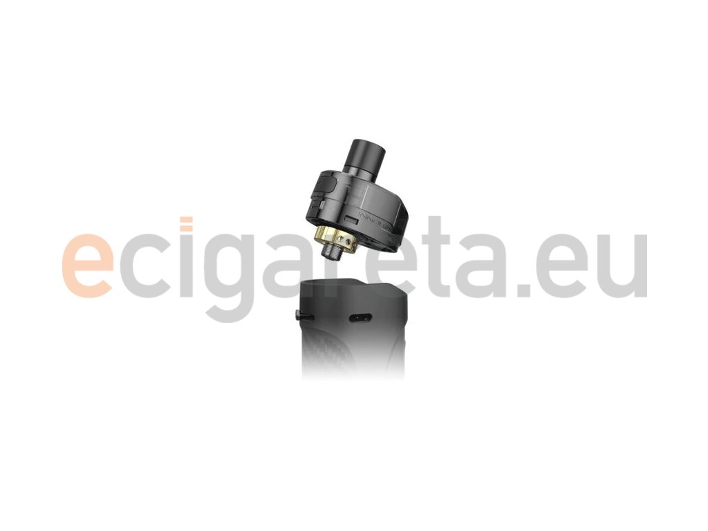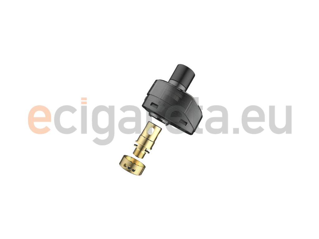 Ve vrchní části je k tělu baterie připojena cartridge s obrovským objemem a vyměnitelnými žhavícími tělísky. Objem této cartridge činí 4,5 ml. V její přední části se nachází plnící otvor zakrytý silikonovou záslepkou pro rychlé a snadné plnění. Spodní část cartridge je opatřena kroužkem pro regulaci přísunu vzduchu do cartridge. Ve vrchní části cartridge najdete vyměnitelný náustek, přičemž v balení se nachází náustek pro MTL i pro DL vaping.