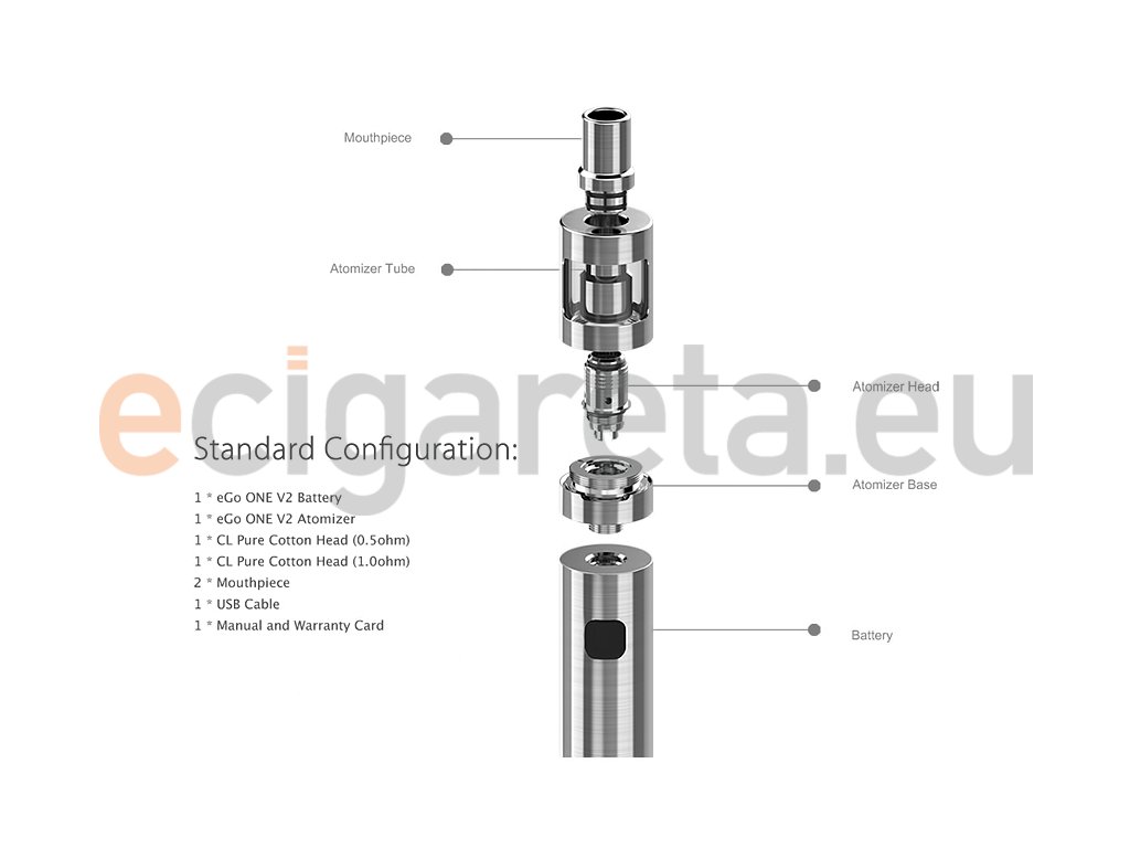 Joyetech eGo ONE V2 je vylepšená verze nejrozšířenějšího modelu elektronické cigarety od společnosti Joyetech. Nejvýraznější novinka se skrývá v clearomizeru, který využívá nové atomizery z čisté organické vaty (autentická chuť liquidu). Mezi její další přednosti patří dvojitý ochranný obvod (ochrana proti přebití a podbití), režim konstantního a výstupního napětí čí signalizace nabití.