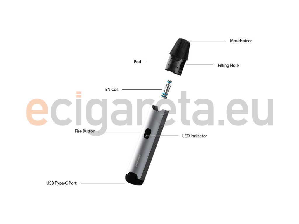V případě potřeby pak můžete baterii kdykoliv dobít pomocí portu USB-C. Lze dobíjet proudem až 2 A. Přímo ve vrchní části se nachází cartridge s objemem 2 ml a perfektně tvarovaným náustkem pro pohodový vaping. Cartridge je kompatibilní se žhavícími tělísky Joyetech EN Mesh. V balení najdete dvě tělíska s odporem 0,8 ohm. Díky mesh pletivu uvnitř těchto tělísek získáte vynikající podání chuti při každém potahu. Samotnou tuhost potahu potom můžete ovlivnit pomocí duálního airflow systému. Jakmile nasadíte cartridge na tělo baterie jedním ze dvou směrů, ovlivníte tím výslednou tuhost potahu. Jedním směrem je potah vzdušnější, druhým zase utaženější. Volba je čistě na vás. Joyetech EVIO C Pod Kit je synonymem jednoduchosti a praktičnosti.
