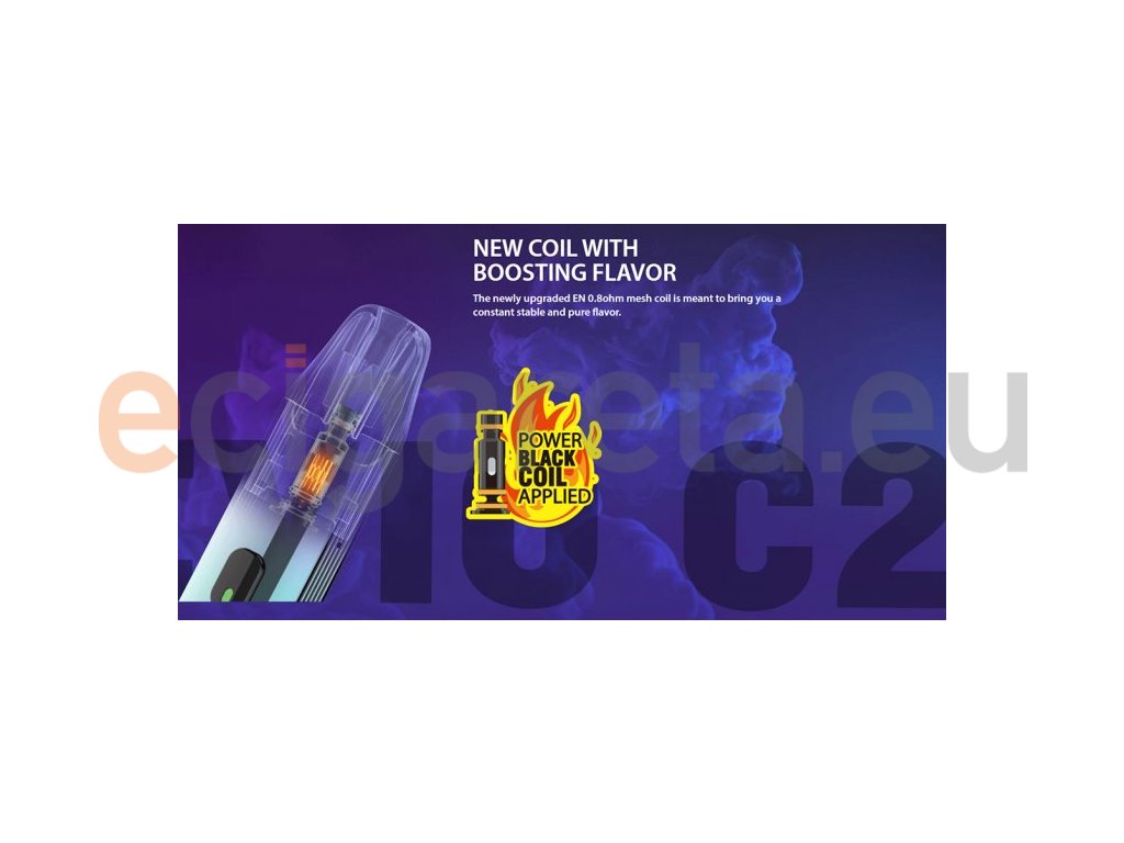 Joyetech EVIO C2 je vylepšená verze elektronické cigarety EVIO C. Oproti původnímu modelu upgradoval výrobce EN atomizer pro stabilní a čistou chuť liquidu. Díky jednoduchému otočení cartridge o 180 stupňů si můžete vychutnat MTL nebo RDL vaping. EVIO C2 baterie disponuje vestavěným monočlánkem o kapacitě 800mAh s LED indikátorem stavu nabití, USB-C portem pro rychlé nabíjení za pouhých 30min a s maximálním výkonem až 18W. Cartridge s atomizerem EN je plně kompatibilní s cartridgemi EVIO C.