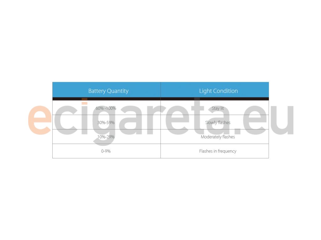 - čím méně je baterie nabitá, tím méně dává e-cigareta výkonu, aby udržela baterii nabitou co nejdelší dobu