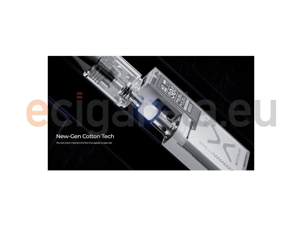 Futuristický designe, jednoduché ovládání, fantastická kouřivost, to je elektronická cigareta Moti Play Pod. Tělo baterie disponuje integrovaným monočlánkem o kapacitě 900mAh s regulovatelným výkonem až 30W, USB-C nabíjením, manuálním i automatickým spínačem a přehledným displejem. Cartridge o objemu 2ml disponuje vyměnitelnou žhavící hlavou Moti Play o odporu 0,45ohm a 1ohm. Důmyslná regulace přívodu vzduchu ve spodní části baterie pro optimální nastavení kouřivosti je už jen pomyslnou třešničkou na dortu.