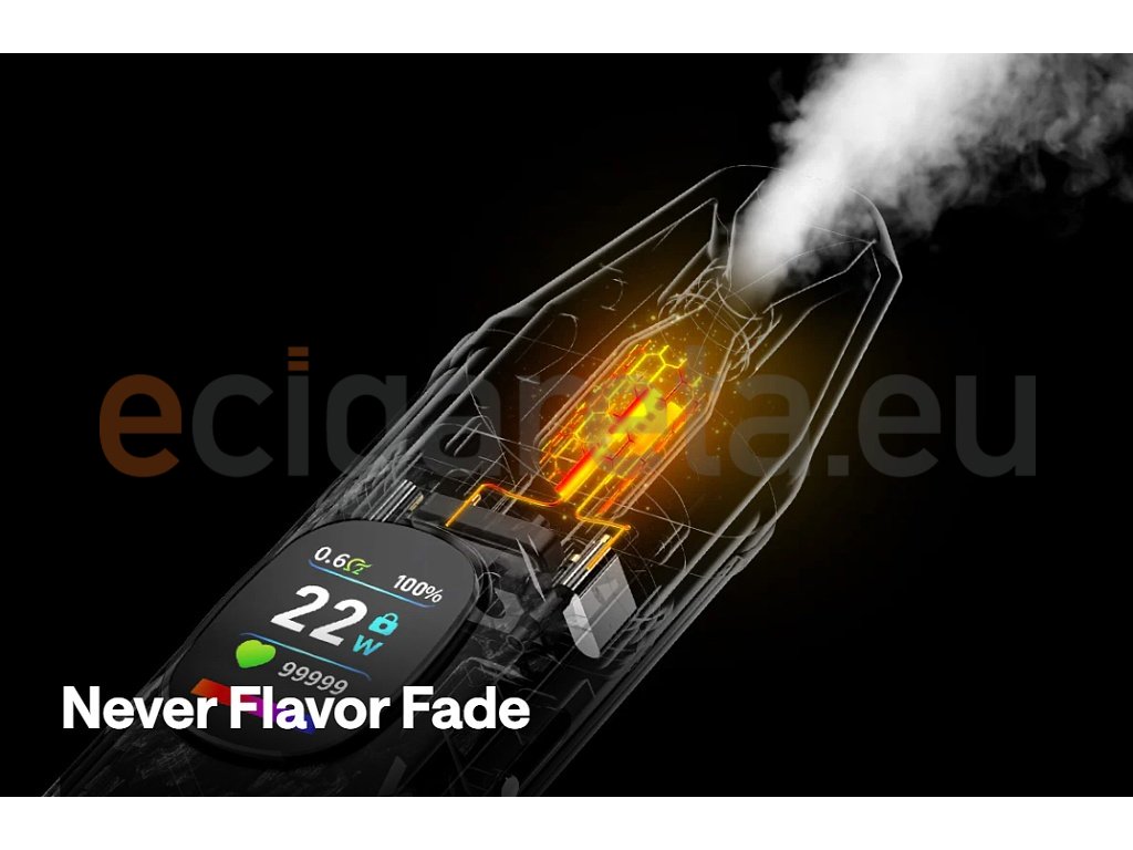 Oceněný designLuxusní konstrukce z kombinace zinkové slitiny, karbonu/IML a PCTG materiálů s elegantními barevnými variantami včetně luminiscenčního karbonu. Oceněno prestižní Muse Design Awards za nejkrásnější elektronickou cigaretu roku 2025 díky dokonalému spojení funkčnosti a estetiky. |