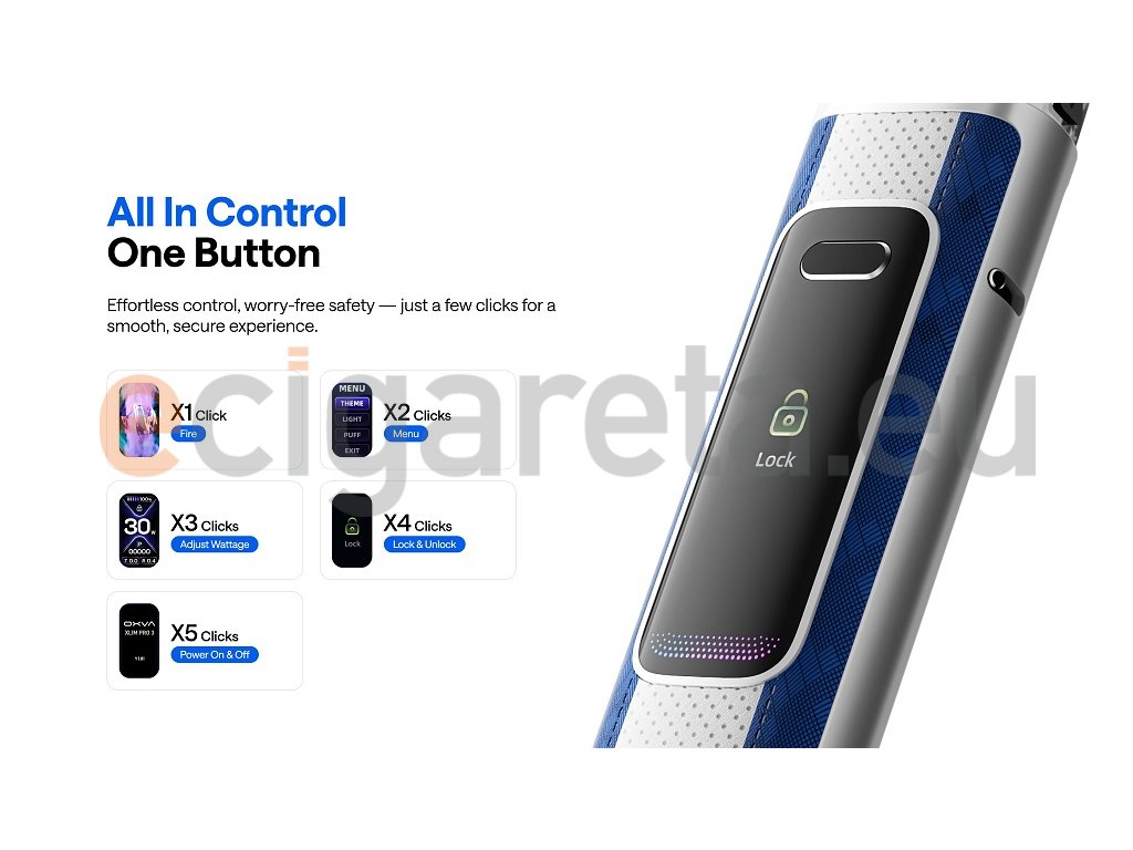 Prémiový designOXVA XLIM Pro 3 disponuje robustní konstrukcí z vysoce kvalitní zinkové slitiny v kombinaci s odolným PCTG plastem pro pody. Klasický zploštělý pero-stylový design s jemně zaoblenými rohy zajišťuje pohodlné držení a přirozený úchop v ruce. Zařízení je dostupné v devíti atraktivních variantách včetně prémiových kožených povrchů a moderních hedvábných textur. |
