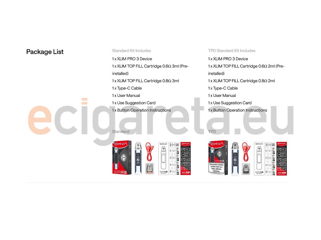 - 1x Tělo OXVA XLIM Pro 3 (integrovaná baterie 1500mAh)