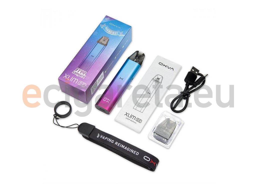 Oblíbená elektronická cigareta OXVA Xlim Se se Vám představuje v novém kabátě. Oproti první verzi výrobce obohatil obsah balení o druhou cartridge (0,8ohm), USB-C kabel a uživatelsky přívětivou šňůrku na krk. Ergonomické tělo baterie z hliníkové slitiny ukrývá integrovaný monočlánek o kapacitě 900mAh s automatickým výkonem... více info v detailním popisu