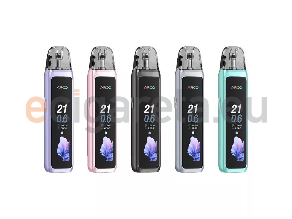 SMOK Arco Max je kompaktní a stylová elektronická cigareta třídy pod systém, která spojuje prémiové zpracování s moderními technologiemi v jednom elegantním těle. Zařízení je navrženo pro každodenní vapování a osloví jak začátečníky, tak zkušené uživatele, kteří oceňují pohodlí a spolehlivost. Tělo je zhotoveno ze zinkové slitiny s lesklým rámem a zadním panelem s IML povrchem, který dodává přístroji luxusní charakter a výraznou odolnost. Dominantou čelní strany je velký 2,25palcový barevný TFT displej, jenž přehledně zobrazuje veškeré provozní informace a nabízí výběr ze čtyř animovaných grafických témat. Vapování je aktivováno automaticky potahem z náustku, bez nutnosti mačkat jakékoliv tlačítko – provoz je tedy maximálně intuitivní a přirozený. Rozměry 112,65 × 26 × 17,2 mm zajišťují pohodlné držení v dlani a snadnou přenositelnost.