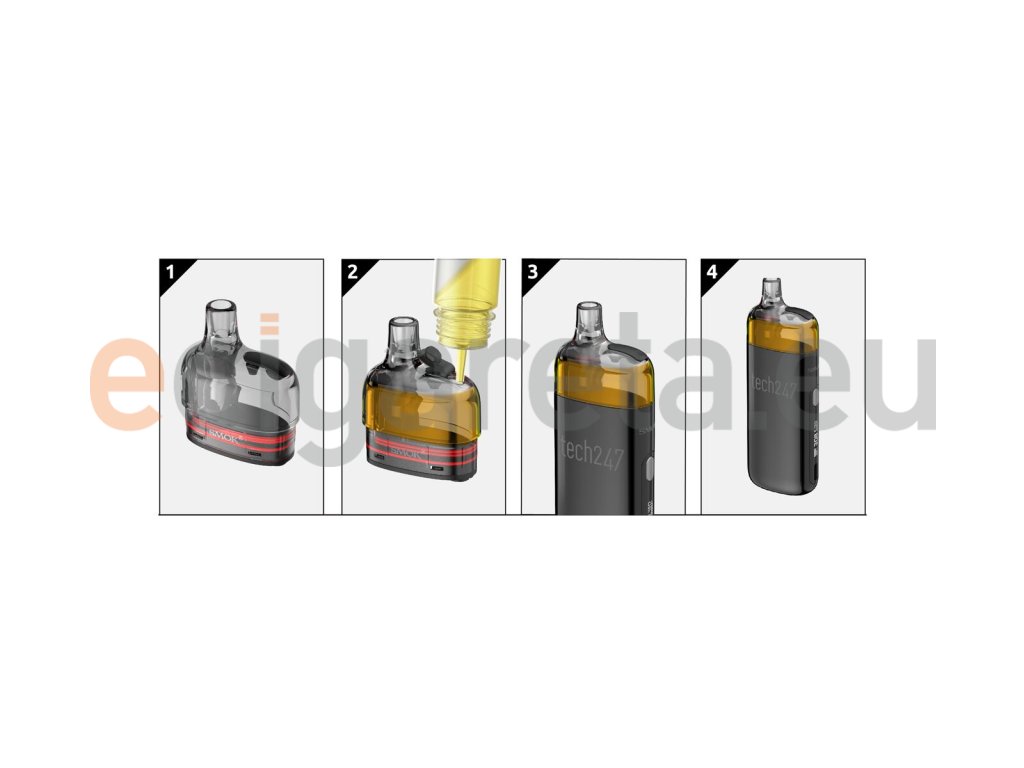 Už žádné starosti s pracným odpojováním cartridge pro potřeby naplnění. U modelu Tech247 budete moci cartridge plnit přímo na těle baterie bez jejího odpojování. V horní části cartridge se nachází praktická silikonová záslepka, stačí ji jen odklopit a začít plnit. I přes velký objem cartridge 4ml ji zvládnete doplnit doslova za pár vteřin.