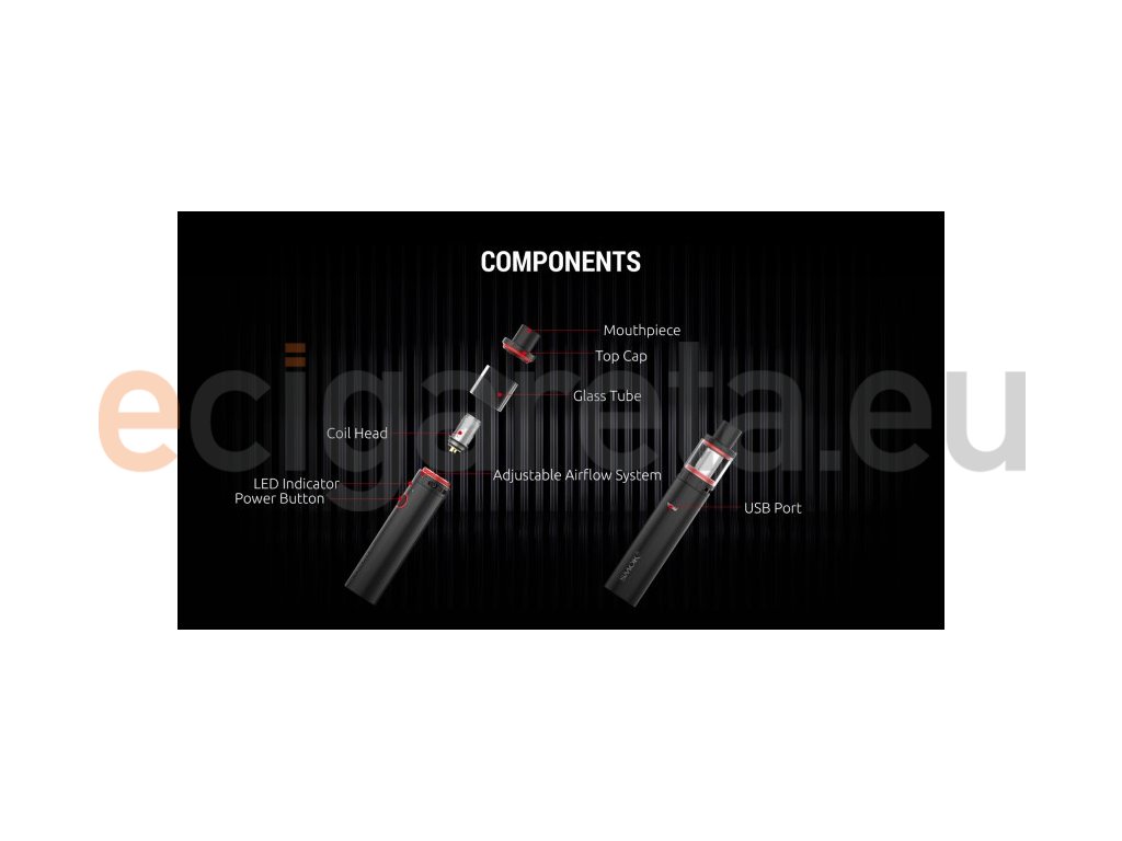 Není určeno pro náplně obsahující nikotin! Elektronické cigarety Vape Pen od Smoktechu přicházejí s verzí V2, kterou si oblíbí jak zkušení uživatelé, tak i úplní začátečníci, a to díky jednoduché obsluze s automatickým výkonem až 60W (výkon je nastavován automaticky v závislosti na zvoleném odporu atomizeru). Ergonomické tělo baterie disponuje kapacitou 1600mAh, LED indikátorem stavu nabití a důmyslným vyváženým přívodem vzduchu pro dokonalou chuť liquidu a optimální kouřivost. Baterie je opatřena speciálním závitem pro clearomizer, který lze jednoduše odšroubovat a vyměnit žhavicí hlavu řady Vape Pen. Používá systém horního plnění - po odšroubování vrchní části plníte liquid přímo do těla nádržky o objemu 3ml. Boční přívod vzduchu zajišťuje velkou tvorbu páry. Mezi její další přednosti patří ochrana proti zkratu a přehřátí, nízkému odporu a 8-mi vteřinová ochrana žhavení.