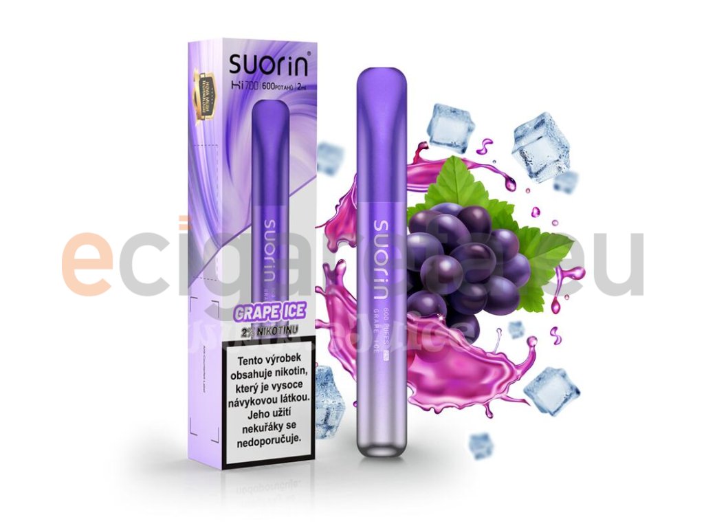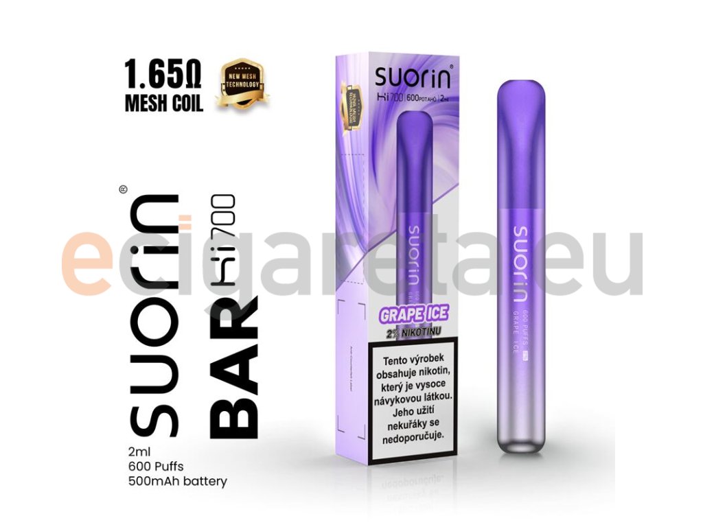 Suorin Bar Hi700 Disposable Pod (Grape Ice) intenzita nikotinu 20mg tabáková nálepka Kolek Q