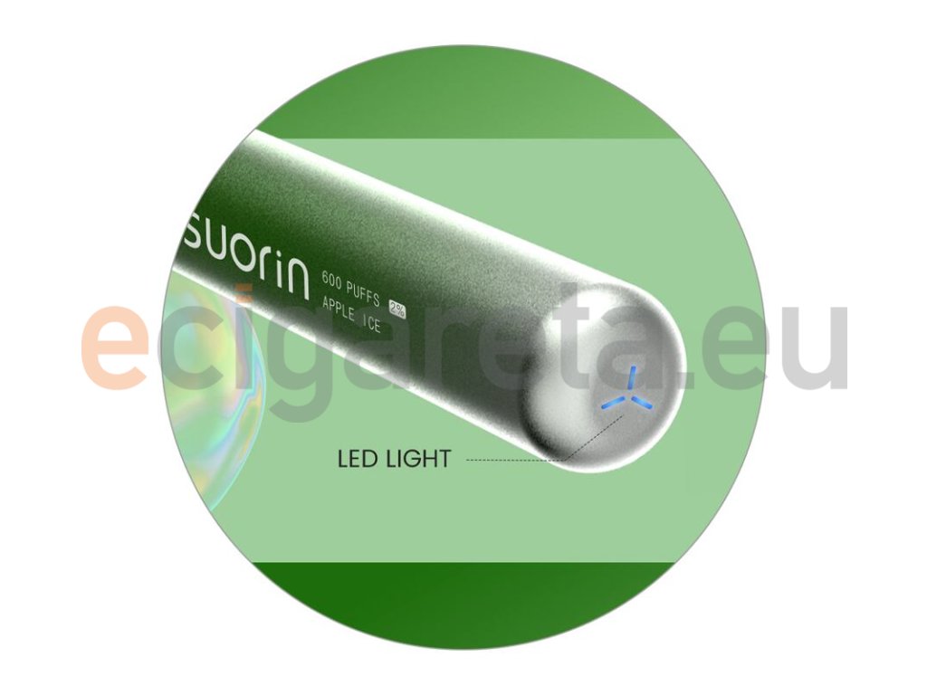 Design celé e-cigarety Suorin Bar Hi700 potom dokresluje praktická LED dioda ve spodní části, která svítí během potahování a dodává celému zařízení futuristickou estetiku. Praktický designový doplněk také informuje o případném vybití baterie, budete tak mít přehled o tom, co se s vaší e-cigaretou zrovna děje.