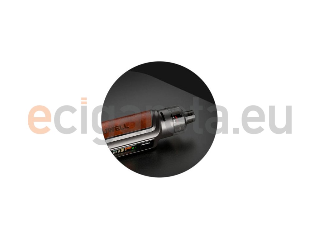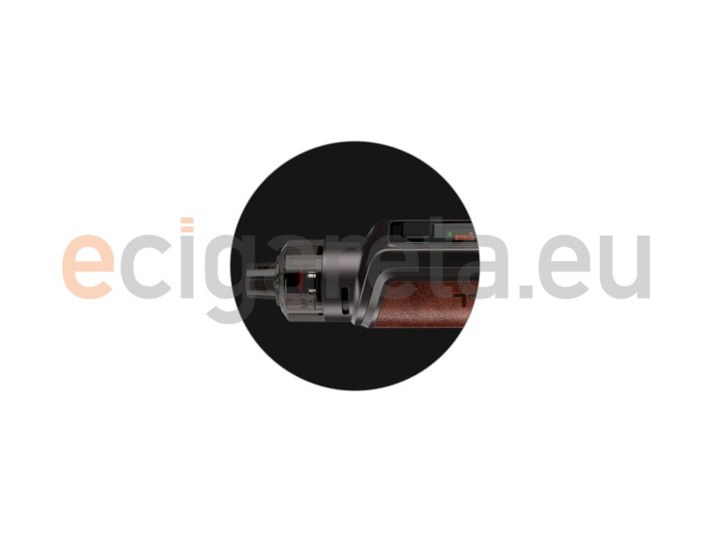 Odklopením zadního krytu objevíte slot pro vložení externí baterie. Zařízení pracuje s jednou baterií typu 18650. Díky pohonu na externí baterii je zajištěn stabilní chod zařízení, rychlý náběh žhavení a možnost využití vysokého výstupního výkonu, jež dosahuje až 80 W. Baterii si navíc kdykoliv pohodlně dobijete přímo v e-cigaretě díky portu USB-C v přední části. Lze ji dobíjet proudem až 2 A.